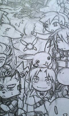 部誌ペーパー用原稿集合イラストペン入れ終わり