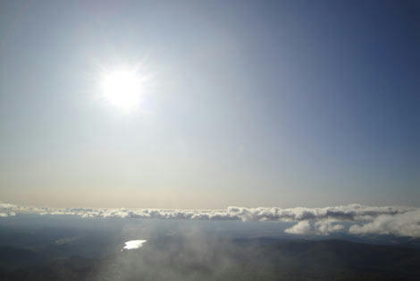 着いてすぐのころは、山頂付近に雲がかかっていて心配していましたが、登って行くに連れて雲がなくなり、山頂が露に。
