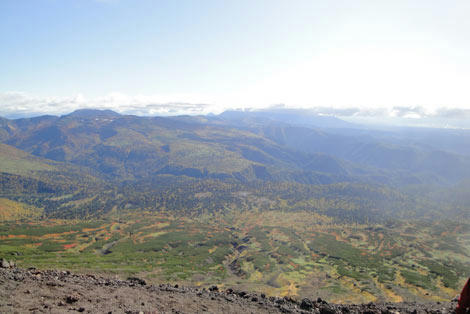 遠くの方にぽつんと立ってる棒は多分九合目辺りです。