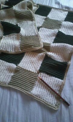 1年ほど前からコツコツ編んでた膝掛けができました。