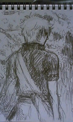 誰を描こうとしてたのか判らないほど描きかけのが一枚あったので、銀さんにしてみました。